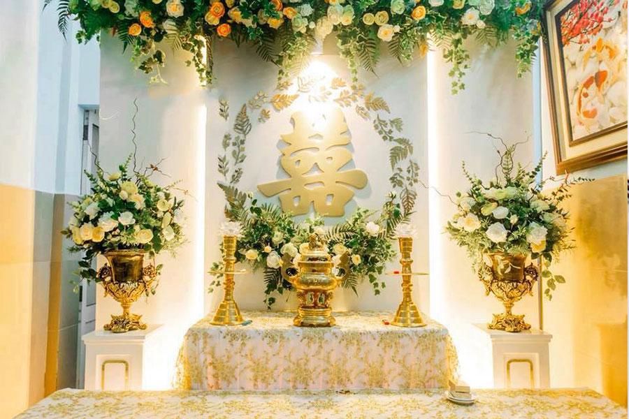 Đừng quá lo lắng! Với hơn 13 năm kinh nghiệm, đội ngũ chuyên gia của Dịch vụ tiệc cưới Phát Hoàng Gia sẽ gợi ý cho bạn những mẫu trang trí gia tiên tone vàng nổi bật và đầy tinh tế để bạn sẵn sàng đón ngày vui trọng đại!
