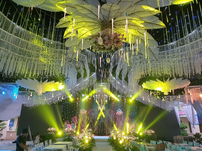 Tối ưu ánh sáng: Ánh sáng giúp sân khấu đám cưới thêm ấm áp, sang trọng và thu hút ánh nhìn.