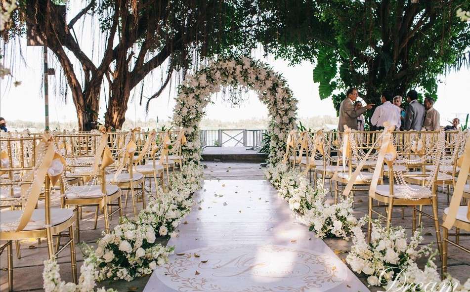 Với không gian mở như sân thượng, sân vườn, bãi biển, bạn có thể thiết kế sân khấu đám cưới ngập tràn hương sắc thiên nhiên.