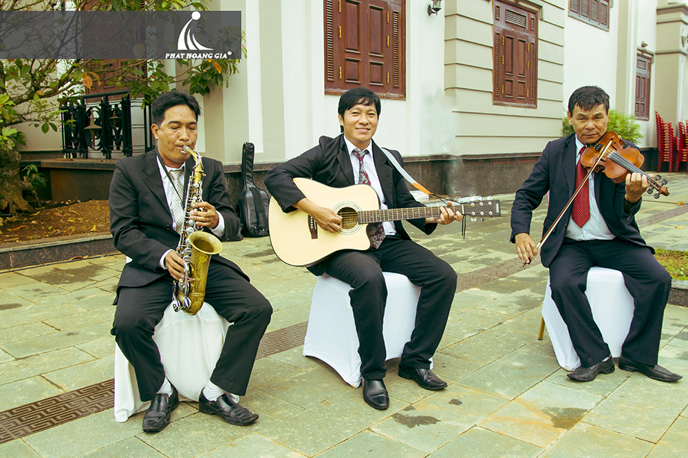 Tưởng tượng nếu trong tiệc cưới của bạn không hề có một xíu giai điệu âm nhạc nào, thì sẽ buồn tẻ đến bao nhiêu? Những bản nhạc hòa tấu du dương được thể hiện bởi những nhạc công Violon, Piano, Saxophone, Cello, Guitar hay cả những nghệ sĩ chơi nhạc cụ dân tộc cũng đều khiến cho không khí bữa tiệc trở nên ấm cúng và trang trọng.