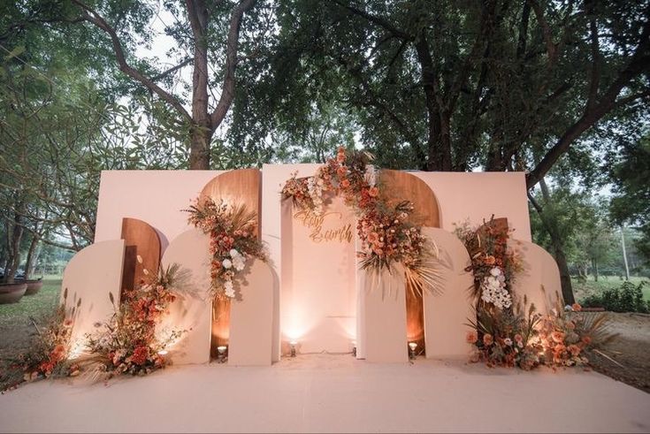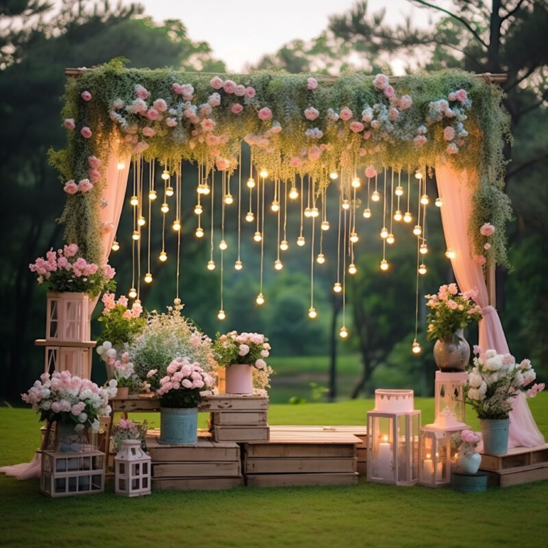 Nếu bạn yêu thích một không gian cưới ngọt ngào và lãng mạn, phong cách này sẽ là lựa chọn lý tưởng. Backdrop đám cưới ngoài trời theo phong cách lãng mạn thường sử dụng nhiều hoa và ánh sáng mềm mại để tạo nên không gian mơ mộng.