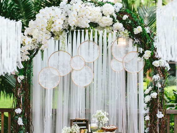 Phong cách Bohemian (Boho) đang ngày càng được nhiều cặp đôi yêu thích vì sự phóng khoáng và nghệ thuật. Backdrop đám cưới ngoài trời theo phong cách này thường mang vẻ đẹp hoang dã, tự do với màu sắc tươi sáng và họa tiết đặc trưng.