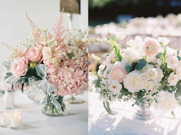 Một combo màu truyền thống nhưng vẫn luôn đẹp và lãng mạn. Sự kết hợp giữa sắc hồng tươi tắn của hoa cùng với sự trang nhã của màu trắng tạo nên không gian trang trí sang trọng và đẳng cấp.