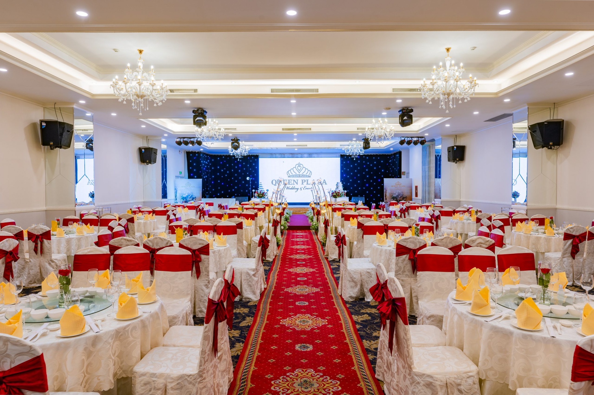 Sau khi đã chọn được nhà hàng phù hợp, hãy chú ý đến diện tích sảnh tiệc. Một không gian vừa vặn với số lượng khách sẽ tạo cảm giác ấm cúng, tránh sự trống trải và tiết kiệm chi phí thuê. Đây là kinh nghiệm chọn nhà hàng tiệc cưới quan trọng giúp cân bằng giữa ngân sách và trải nghiệm của khách mời.