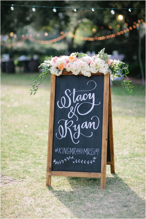 Bình thường mọi người khi tới đám cưới sẽ nhìn thấy cổng hoa đầu tiên. Nhưng, đặt trường hợp bạn tổ chức ở nhà hàng, khách sạn, có thể sẽ có nhiều đám cưới tổ chức cùng lúc, vậy làm sao để khách mời tìm ra được đúng bữa tiệc của bạn? Câu trả lời rất đơn giản, lên ý tưởng trang trí cưới với một bảng hiệu lối vào không chỉ giúp bạn “định vị” tiệc cưới mà còn là một điểm nhấn độc đáo cho tiệc cưới của bạn.