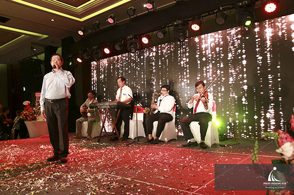Mở đầu bữa tiệc là tiết mục văn nghệ của chủ nhân, như một lời cảm ơn, tri ân đến tất cả khách mời đã đến tham dự buổi tiệc.