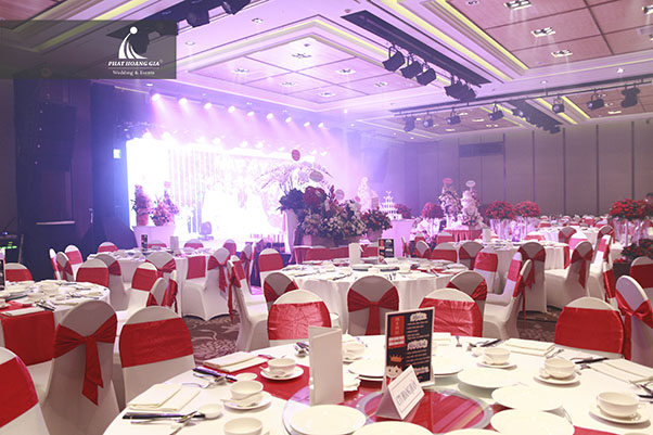 Trưa 13h00: Đội ngũ Phát Hoàng Gia có mặt tại Lotte Legend Hotel Saigon 2A-4A Tôn Đức Thắng, Bến Nghé, Quận 1 để chuẩn bị set up các hạng mục trang trí tiệc. Buổi tiệc được đội ngũ nhân viên Phát Hoàng Gia chuẩn bị chu đáo từng hạng mục từ cổng chào, tiểu cảnh chụp hình, backrop sân khấu, lối đi cùng bàn gallery tràn ngập hoa tươi.