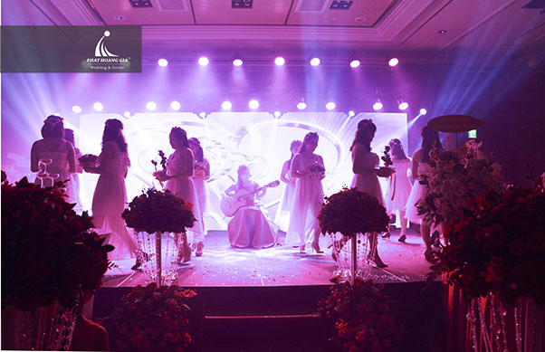 Đến 17h00 chiều, Phát Hoàng Gia chính thức bàn giao tất cả các hạng mục trang trí và bàn tiệc. Không gian toàn bộ buổi tiệc là sự kết hợp hài hòa giữa hoa tươi và những phụ kiện trang trí tinh tế, hòa quyện giữa phong cách sang trọng thanh lịch.