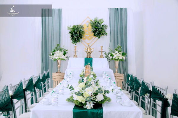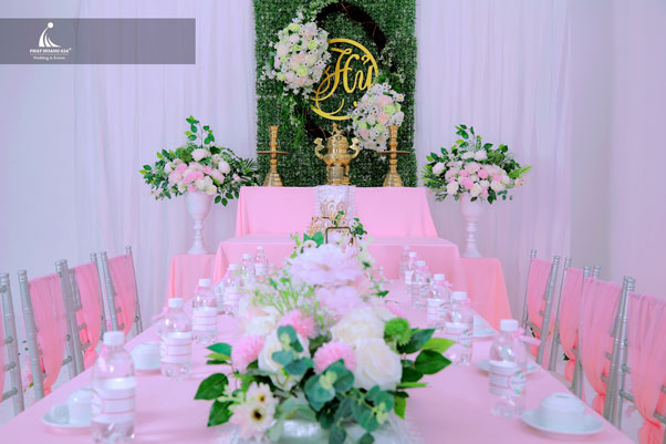 Bằng những kỹ năng của một Wedding Planer chuyên nghiệp chúng tôi sẽ tư vấn cho bạn những tone màu phù hợp nhất với chính ngôi nhà của bạn. Mang đến cho bạn một lễ đính hôn trọn vẹn và hoàn hảo nhất.
