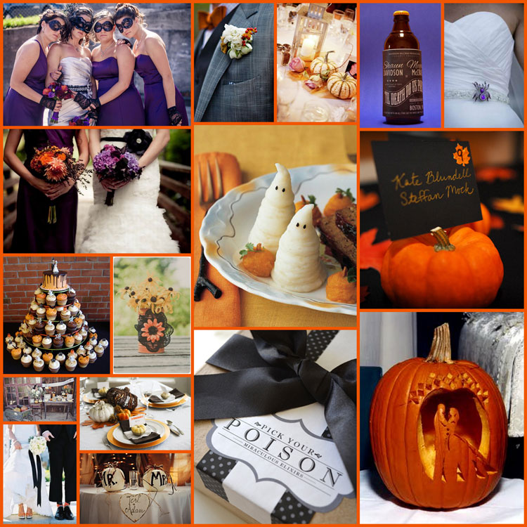 Nhắc đến Halloween là người ta lại liên tưởng đến sắc cam sặc sỡ của những quả bí đỏ và tông màu đen u ám, ma quái. Tuy nhiên các cô dâu chú rể có thể tổ chức một tiệc cưới với những sắc màu cực chất khác như đỏ – đen, tím – đen, trắng – đen….