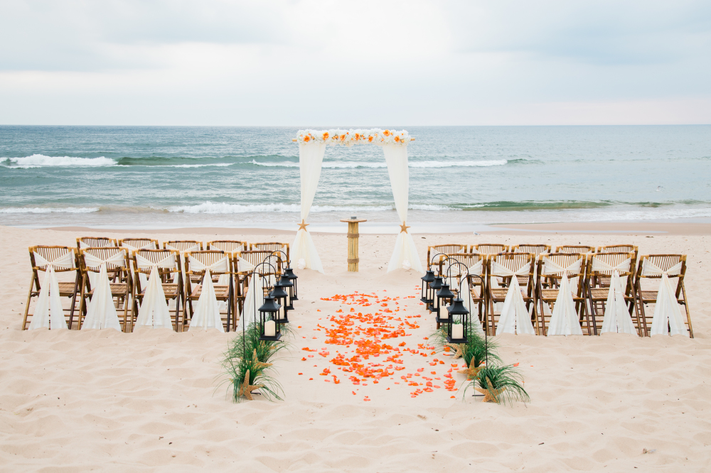 Niềm vui các đôi uyên ương sẽ được nhân đôi khi tổ chức đám cưới tại một nơi trong lành, cách xa sự nhộn nhịp của thành phố, nơi có gió biển lồng lộng cùng sóng vỗ rì rào.