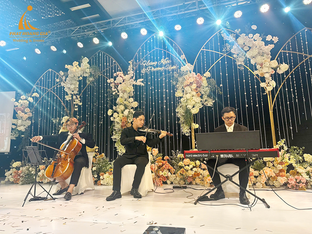 Trong không gian lãng mạn của một buổi tiệc cưới, âm nhạc đóng vai trò quan trọng giúp tạo nên bầu không khí ấm áp, sang trọng và đầy cảm xúc. Dịch vụ tiệc cưới Phát Hoàng Gia tự hào là đơn vị chuyên cho thuê ban nhạc đám cưới chuyên nghiệp tại TP. Hồ Chí Minh, mang đến những màn trình diễn chất lượng, giúp ngày trọng đại của bạn trở nên đáng nhớ hơn bao giờ hết.
