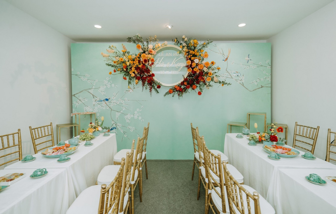 Trang trí bàn thờ gia tiên là phần quan trọng trong lễ cưới, không chỉ thể hiện sự thành kính mà còn tạo điểm nhấn thẩm mỹ cho ngày trọng đại. Trong vài năm gần đây, sắc xanh ngọc trở thành lựa chọn hàng đầu nhờ cảm giác mát mắt, hiện đại và sang trọng mà nó mang lại.