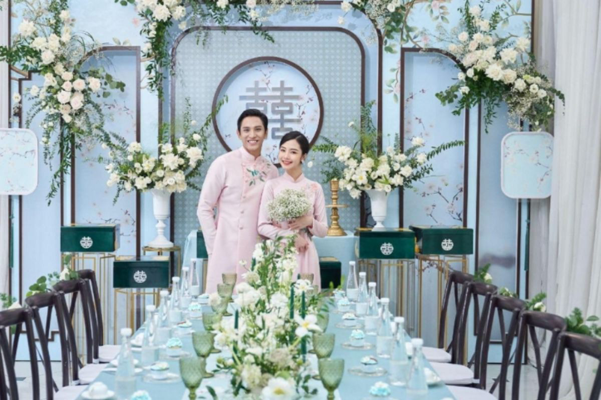Hiện nay, xanh ngọc được nhiều cặp đôi lựa chọn cho ngày trọng đại bởi vẻ đẹp nhẹ nhàng mà không kém phần sang trọng. Việc phối hợp màu sắc đóng vai trò quan trọng: xanh ngọc kết hợp với trắng mang lại sự tinh tế, phù hợp với đa dạng phong cách; trong khi đó, khi đi cùng vàng đồng lại tạo nên sự quý phái. Ngoài ra, bạn cũng có thể phá cách với sự hòa quyện giữa xanh ngọc và các tông màu như hồng pastel hay tím nhạt để tạo nên không gian lãng mạn.