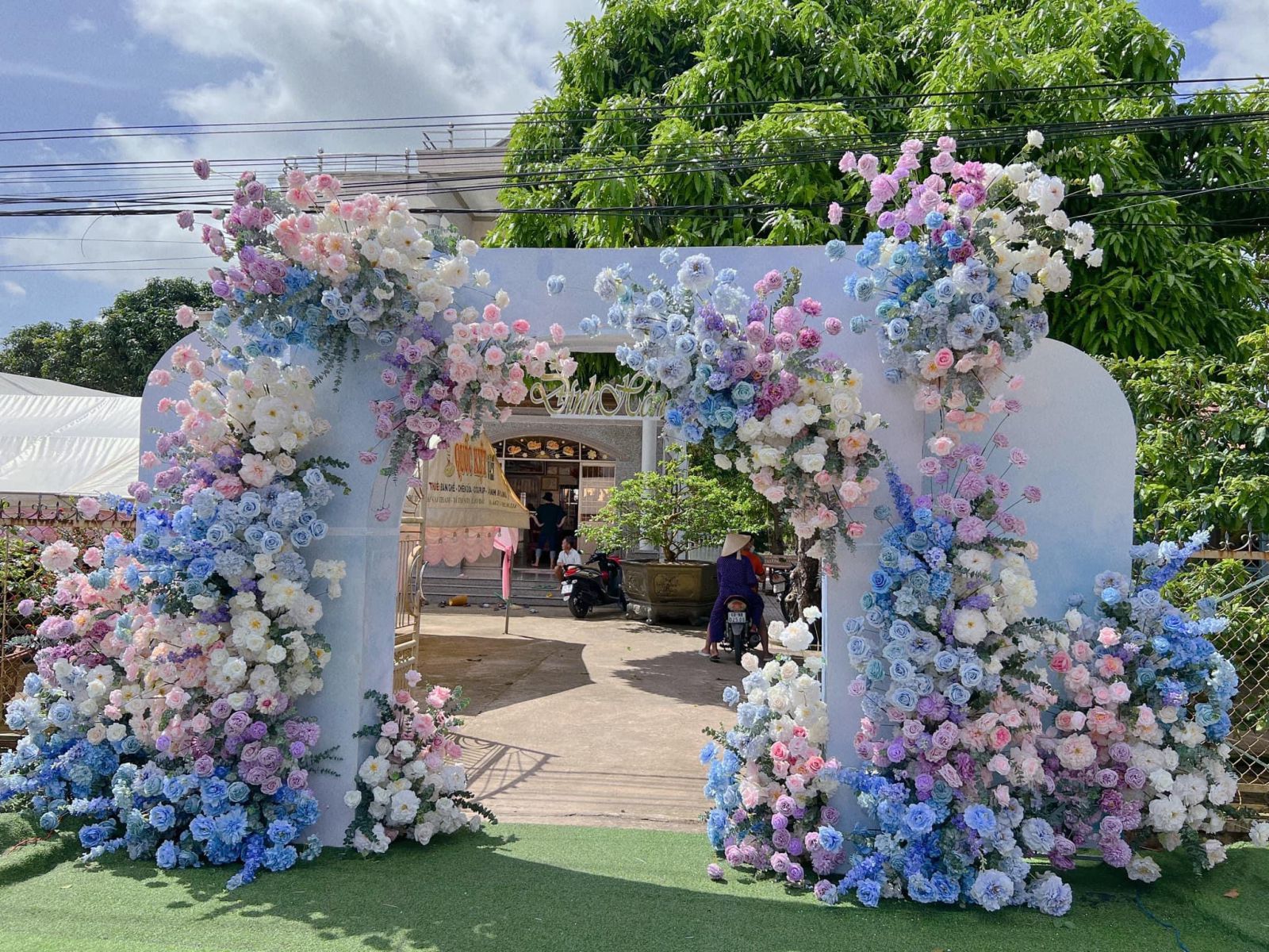 Bên cạnh đó, ở các lễ cưới thông thường, hoa vẫn là chi tiết không thể thiếu như: hoa trang trí xe đón dâu, hoa cổng cưới, hoa sân khấu,… Tuy nhiên, khi cần chuẩn bị trước vài ngày hoặc di chuyển xa, hoa tươi thường mất dáng, phải dùng nhiều băng keo và nilon để cố định, gây mất thẩm mỹ. Lúc này, hoa lụa trang trí cưới chính là lựa chọn thay thế hoàn hảo: vừa giữ được form dáng đẹp mắt, vừa mang lại sự sang trọng cho không gian lễ cưới.